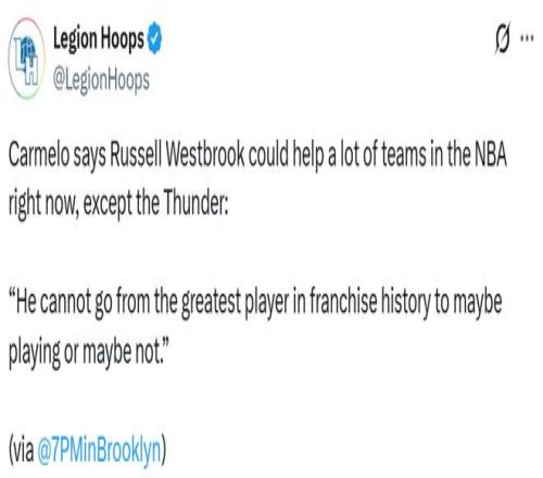 北京時(shí)間10月12日,9屆全明星后衛(wèi)威少仍未與任何NBA球隊(duì)簽約,前隊(duì)友安東尼在播客節(jié)目上談及此事,他很同情威少的處境,也感同身受。