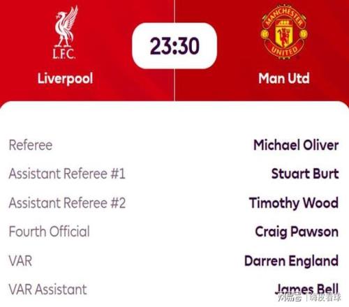 根據(jù)英超官網(wǎng)發(fā)布的信息,利物浦對陣曼聯(lián)的比賽,邁克爾·奧利弗將擔(dān)任主裁判,助理裁判是斯圖爾特·伯特和蒂姆·伍德,第四官員是克萊格·鮑森,VAR裁判是達(dá)倫·英格蘭,VAR助理是詹姆斯·貝爾。從名字來看,相信球迷都不會陌生,多人都有參與重大比賽的經(jīng)歷。