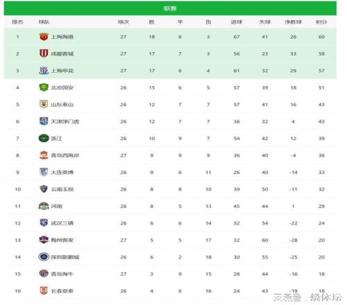 上海海港客場有驚無險,斬獲聯(lián)賽4連勝,目前總積分提升到60分繼續(xù)領(lǐng)跑積分榜。青島海牛沒能拿到積分,因而繼續(xù)深陷降級區(qū),且本輪結(jié)束面臨墊底。