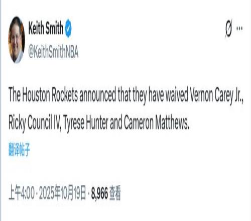 北京時(shí)間10月19日,火箭官方宣布裁掉四名持有非保障訓(xùn)練營(yíng)合同的球員。這四名球員均有可能前往發(fā)展聯(lián)盟,為里奧格蘭德河谷毒蛇隊(duì)(火箭隊(duì)下屬發(fā)展聯(lián)盟球隊(duì))效力,他們分別是弗農(nóng)-凱里二世、里基-康瑟爾四世、泰瑞斯-亨特和卡梅倫-馬修斯。杜蘭特率領(lǐng)新陣劍指沖冠軍。
