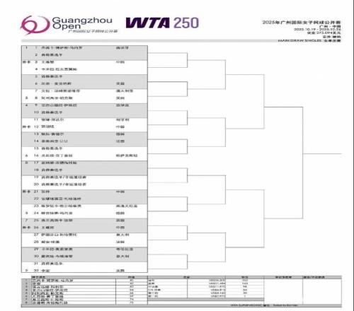 南都訊 記者汪雅云 2025年廣州國際女子網(wǎng)球公開賽單打簽表于19日正式出爐,張帥領(lǐng)銜王曦雨、王雅繁和郭涵煜四位金花出戰(zhàn),瑪利亞、普丁塞娃、伊埃拉、湯姆賈諾維奇和帕克斯等知名選手也將參賽。10月20日,單打正賽將在南沙國際網(wǎng)球中心拉開帷幕。
