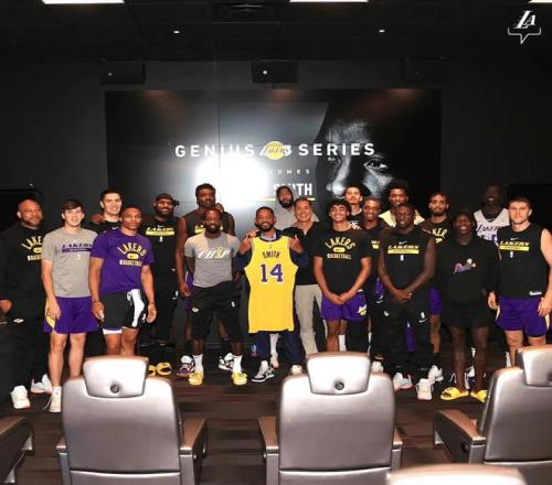 第二天,湖人在官方社交賬號(hào)上發(fā)布了分享會(huì)的照片。威爾·史密斯站在湖人球員、教練和佩林卡中間,手舉著一件特別定制的球衣,詹姆斯在身旁笑臉相迎,而在他們右側(cè)不遠(yuǎn)處,威少站在那里,面無表情,甚至可以說有些憤怒。