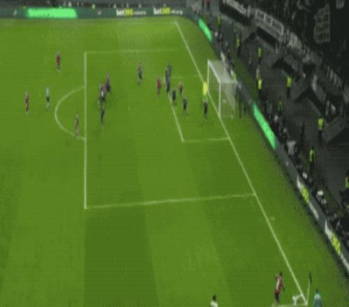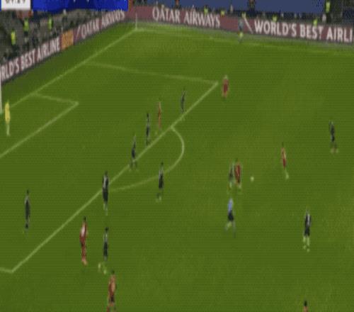 開場只有5分鐘,17歲的小將卡爾鐘擺式過人甩開防守,面對包夾上演精彩世界波,打進歐冠處子球。