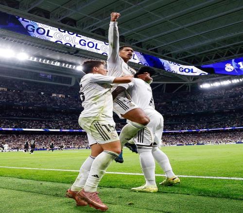 易邊再戰(zhàn),第57分鐘,威尼修斯禁區(qū)內(nèi)小角度打門擊中立柱彈回場內(nèi),貝林厄姆火速插上撿漏補(bǔ)射得手,皇馬1-0領(lǐng)先,下半場早早就取得了夢幻般開局;值得一提的是,這是身價(jià)1.8億歐的英格蘭中場本賽季為皇馬打入的處子球,他振臂怒吼瘋狂慶祝。