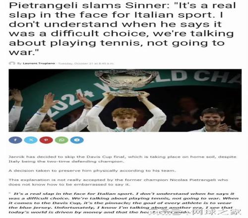 意大利網(wǎng)壇巨星辛納近日陷入一場(chǎng)遠(yuǎn)超網(wǎng)球本身的風(fēng)波。因決定不參加即將到來(lái)的戴維斯杯賽事,這位24歲的球星遭到了專注保護(hù)消費(fèi)者權(quán)益與公民權(quán)益的非政府組織CODACONS的猛烈抨擊,該組織要求撤銷授予他的所有官方榮譽(yù),包括體育外交大使任命、體育功績(jī)金項(xiàng)鏈乃至都靈市榮譽(yù)市民稱號(hào)。