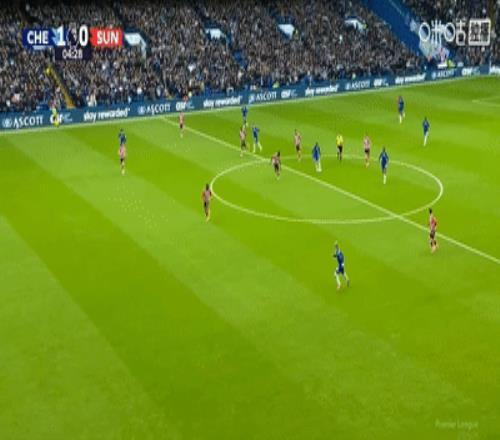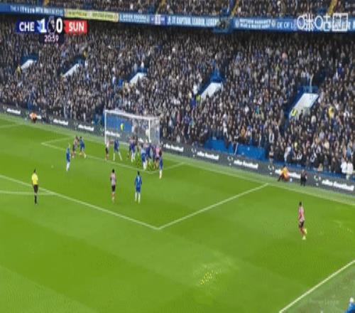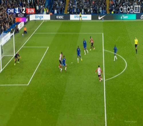 第39分鐘,切爾西前場左側(cè)角球機會,又是加納喬后點包抄不停球直接打門,這次皮球被桑德蘭門將羅埃夫斯擋出。