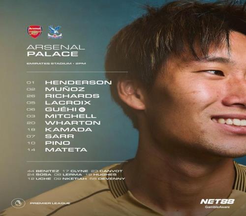 水晶宮首發(fā):1-迪恩-亨德森、2-穆尼奧斯、26-克里斯-理查茲、5-拉克魯瓦、6-格伊、3-米切爾、20-亞當(dāng)-沃頓、18-鐮田大地、7-伊斯梅拉-薩爾、10-耶雷米-皮諾、14-馬特塔