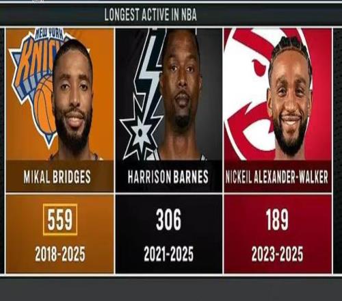 現(xiàn)役連續(xù)出勤紀錄!布里奇斯連續(xù)出戰(zhàn)559場斷層領先 雷速體育 2025-10-27 10:05:10 雷速體育10月27報道 NBA常規(guī)賽,尼克斯對陣熱火。第三節(jié)直播畫面當中,提到了現(xiàn)役球員連續(xù)出勤紀錄,尼克斯球員布里奇斯連續(xù)出戰(zhàn)559場斷層領先其他球員。熱火隊免費觀看_布里奇斯免費觀看_紐約尼克斯隊免費觀看_熱火隊高清在線_布里奇斯高清在線_紐約尼克斯隊高清在線 熱火隊 布里奇斯 紐約尼克斯隊 NBA常規(guī)賽 上一篇: 砍100分并送出18次蓋帽,馬刺文班亞馬創(chuàng)造了NBA歷史的前3場紀錄 下一篇: 杰弗森揭示詹姆斯真實一面曾因發(fā)脾氣向我和弗萊道歉_jrs直播低調看nba