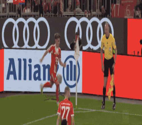 第18分鐘,拜仁在右路連續(xù)傳遞,卡爾傳中,格雷茨卡勉強(qiáng)頭球攻門,沒能命中目標(biāo)。