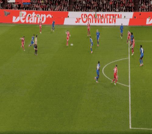 第30分鐘,卡爾送出妙傳,杰克遜差一點就能夠完成射門,一腳踩在弗萊肯的護(hù)腿板上。