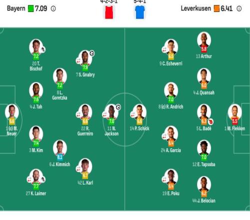 勒沃庫森首發(fā):1-弗萊肯、4-寬薩、5-巴代、12-塔普索巴、13-阿圖爾、44-貝洛西安(85’17-本·塞吉爾)、24-阿萊克斯·加西亞(46’30-馬扎)、8-安德里希、19-波庫(56’11-泰里耶)、9-埃切維里(35-科法內(nèi))、14-??耍?6’7-霍夫曼)。