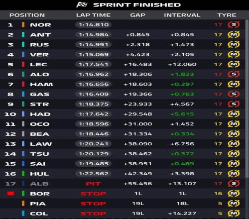 2025賽季F1大獎賽本周末來到英特拉格斯賽道,在剛剛結(jié)束的沖刺賽上,皮亞斯特里遭遇事故退賽,諾里斯領(lǐng)跑獲得冠軍!安東內(nèi)利獲得第二,拉塞爾緊隨其后,維斯塔潘拿到第四!